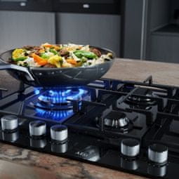 Ploča za kuhanje nudi četiri plinska plamenika i ima kvalitetne rešetke za tavu od lijevanog željeza, koje pružaju čvrstu i stabilnu osnovu za kuhanje. Rotirajući gumbi StepPower omogućuju preciznu kontrolu devet razina intenziteta plina. Plinski plamenici omogućuju brz i učinkovit način kuhanja, jer precizno usmjeravaju plamen kako bi zagrijali dno lonaca i tava. Iznimno snažan plamenik nudi visoku snagu grijanja, što je odlično za pečenje hrane. Potrebno je samo okrenuti i pritisnuti dugme za paljenje.