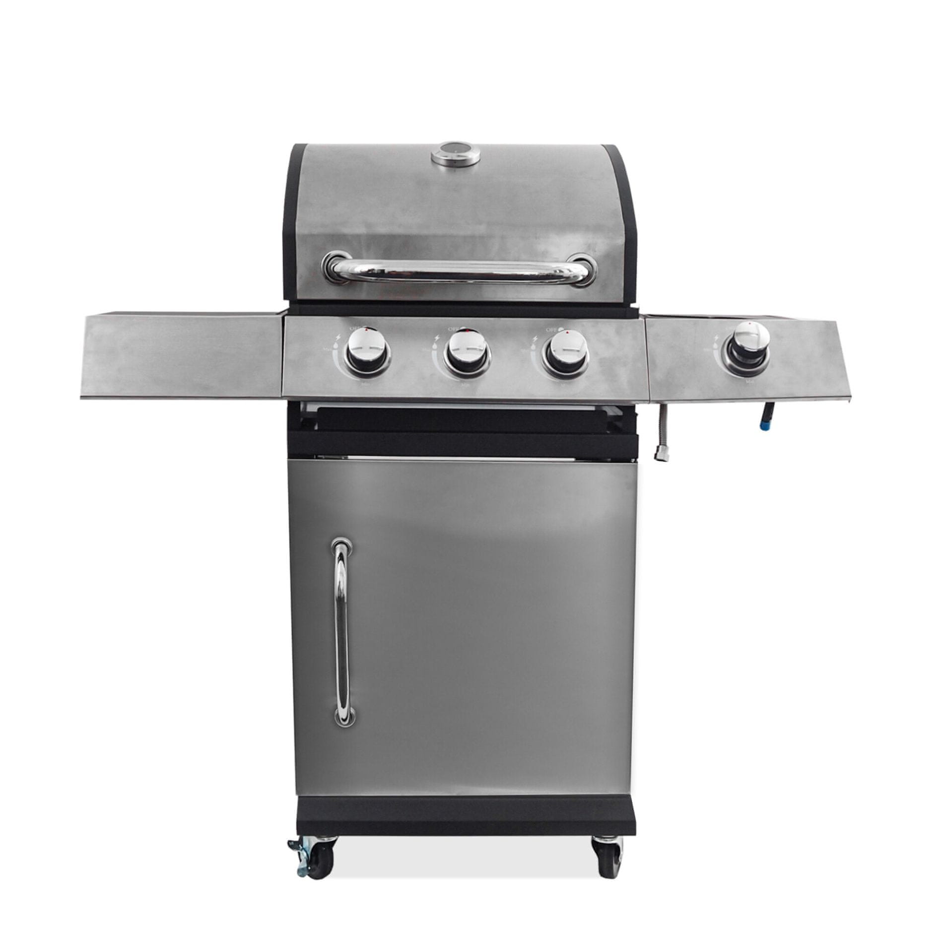 Cijevni plamenici imaju snagu od 11,2 kW, što je potpuno dovoljno za roštiljanje bilo kojeg jela po bilo kojem vremenu. Rešetka za roštilj od masivnog lijevanog željeza osigurava ravnomjerniju raspodjelu topline. Glavni prostor za roštiljanje opremljen je s 3 x plamenikom s odvojenom regulacijom.