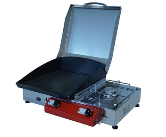 Plinski roštilj s kuhalom veličine 39 × 40 cm. Na toj ploči sa samo malo znanja možete stvarati zanimljive okuse. Plamenici su snažni i omogućavaju jednakomjernije grijanje površine roštilja. Žar je elegantno oblikovan te izrađen od kvalitetnih materijala.