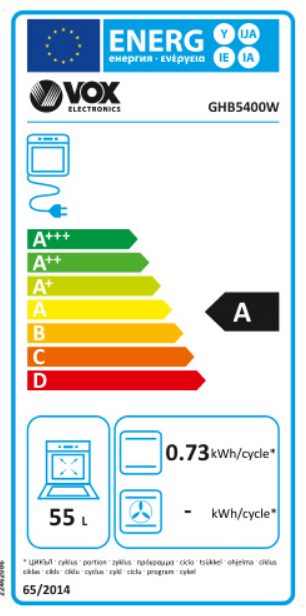 | General | Energetski razred: A Boja: bijela Paljenje: putem gumba Stakleni poklopac: da Sigurnosni ventili plamenika: da Komplet za pretvorbu plina: NG (G20 – 20 mbar) |