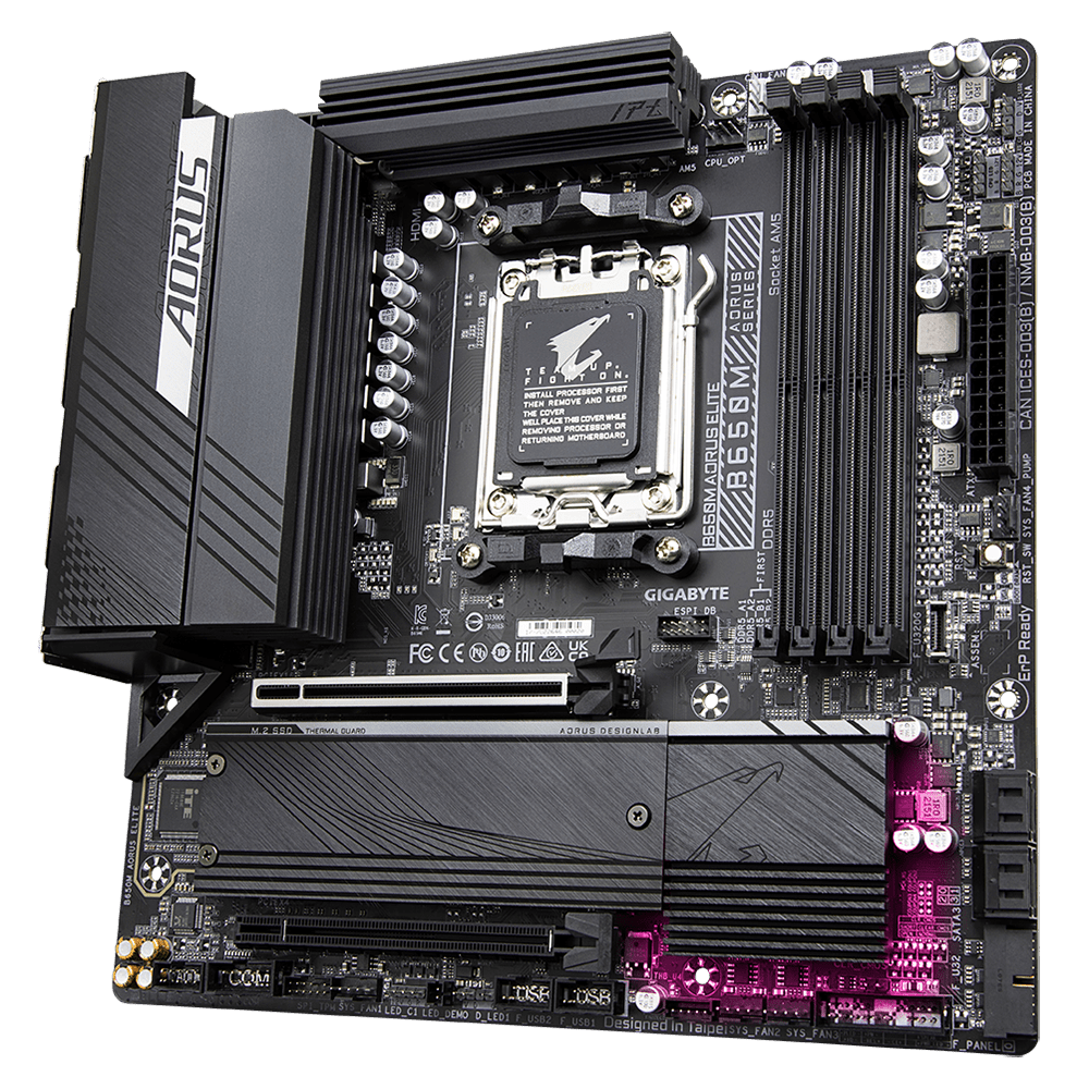 Matična ploča GIGABYTE B650M AORUS ELITE (rev. 1.0) izgrađena je oko čipseta AMD B650 i podnožja AM5, što joj omogućuje potpunu podršku za najnovije procesore AMD Ryzen. Njezin je cilj izvući maksimalan potencijal iz svake komponente.
