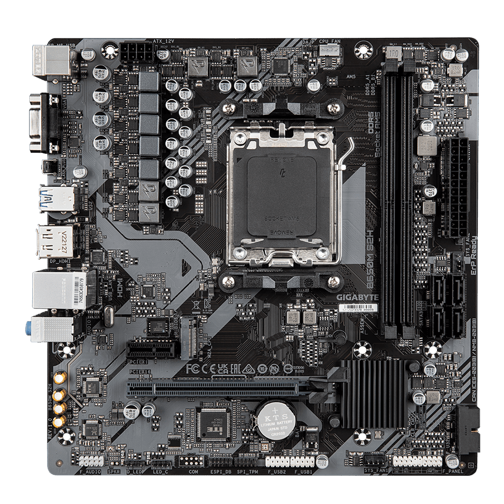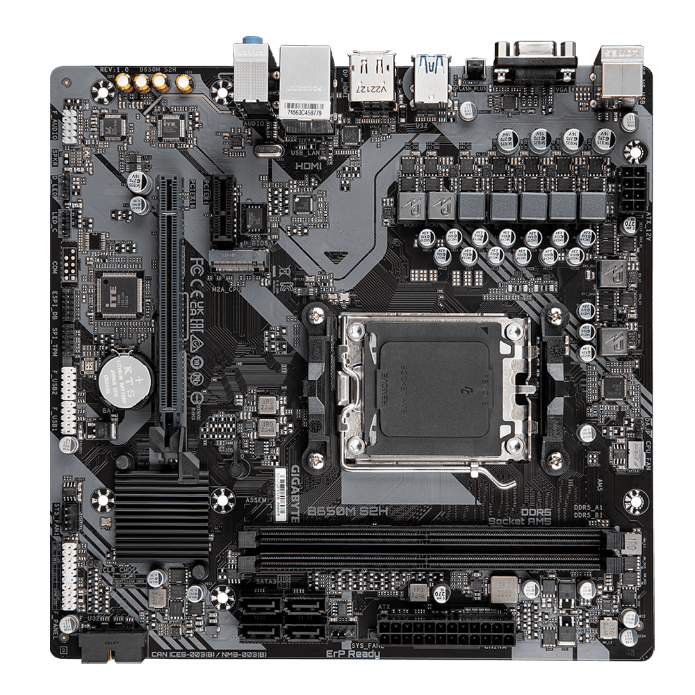 B650M S2H matična ploča s AM5 utičnicom za procesore serije AMD Ryzen™ 7000 i Ryzen™ 8000. Podržava PCIe 4.0 x16 utor, PCIe 4.0 M.2 utor i DDR5 RAM.