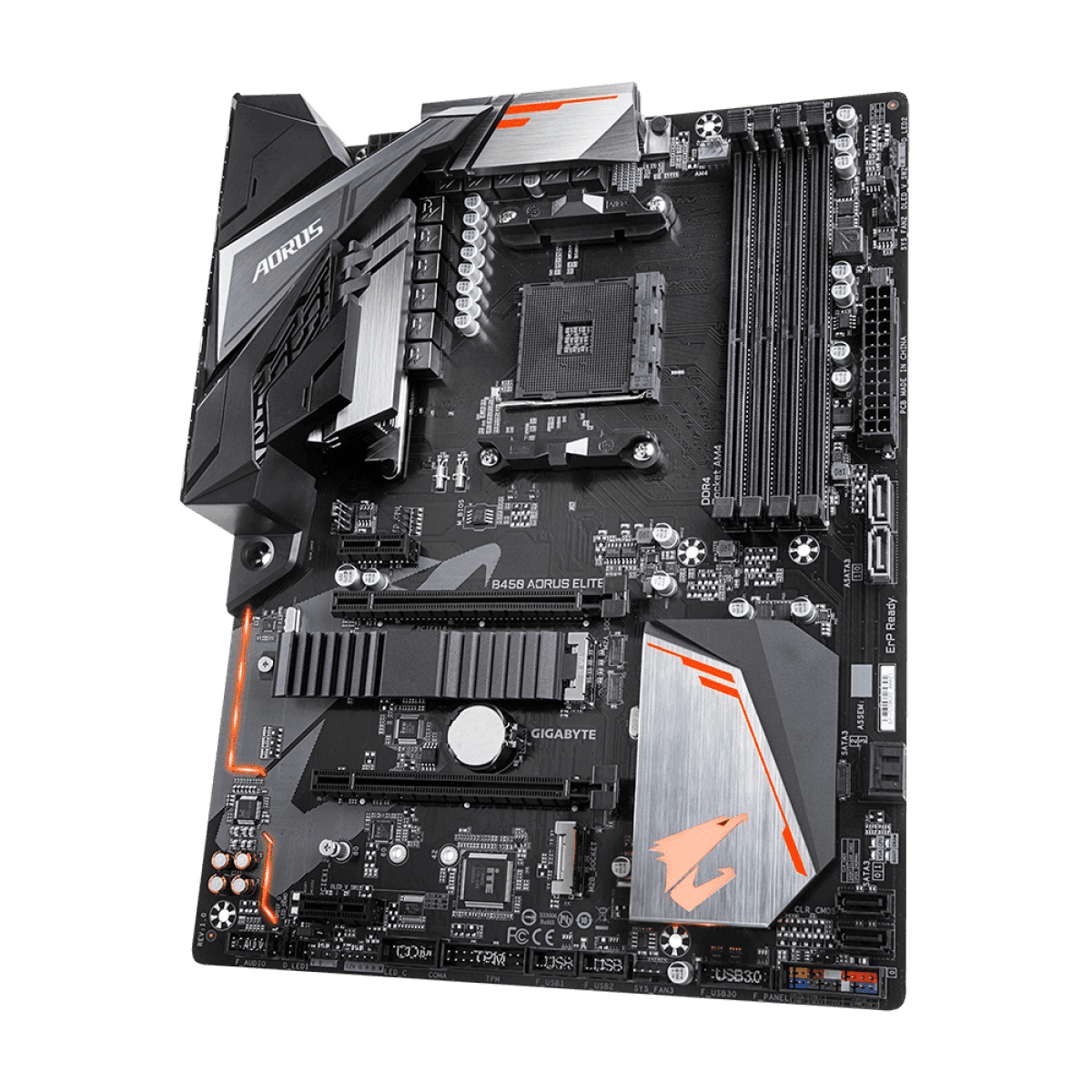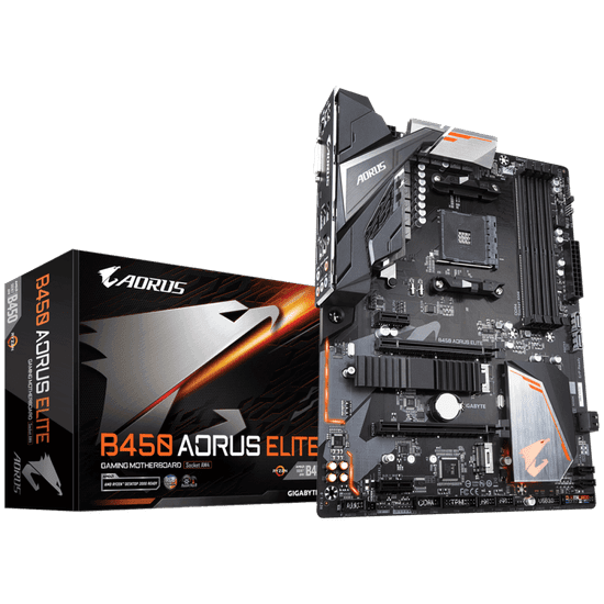 Matična ploča B450 Aorus Elite je dio serije visoko kvalitetnih i snažnih računalnih komponenti Aorus proizvođača Gigabyte. Ploča je izrađena posebno za igrače igara i za one, koji žele snažan i pouzdan računalni sustav. Ima podnožje AM4 i zato je kompatibilna sa snažnim AMD Ryzen procesorima 1. i 2. generacije. Potpora za DDR4 radnu memoriju omogućuje ugradnju snažne memorije do ukupnog kapaciteta od 64 GB.