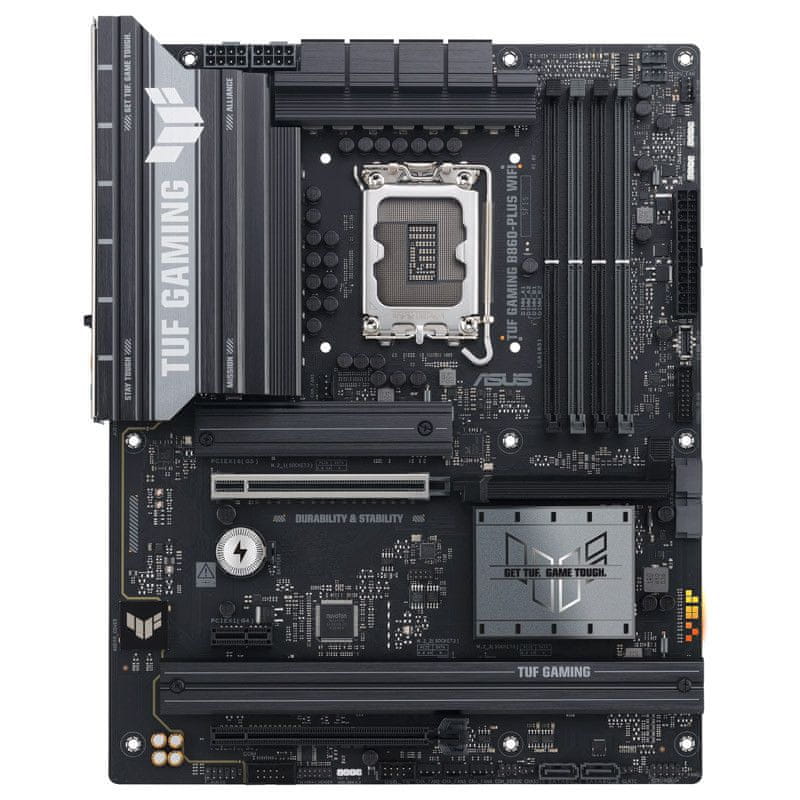 ASUS TUF GAMING B860-PLUS WIFI pruža neusporedivu stabilnost, zahvaljujući kombinaciji vojnih komponenti, naprednim rješenjima za hlađenje i vrhunskoj arhitekturi napajanja. Sa svojim robusnim dizajnom i širokim rasponom naprednih značajki, savršen je izbor za svakoga tko treba pouzdanu platformu za igranje ili snažan računalni sustav za zahtjevne zadatke.