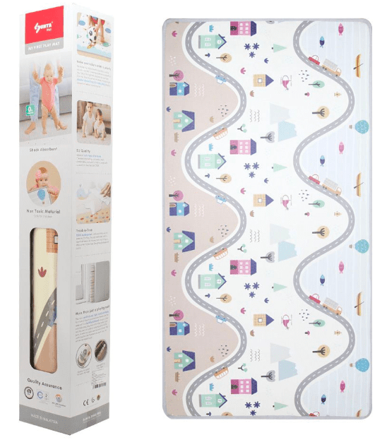 Sun-ta-Toys podloga za igru, Baby Village, 220 × 120 cm, amortizira sve udarce i ima jastučić efekt pa je izuzetno udobna. Idealan za korištenje kod kuće, na pikniku, kampiranju ili čak za vježbanje.