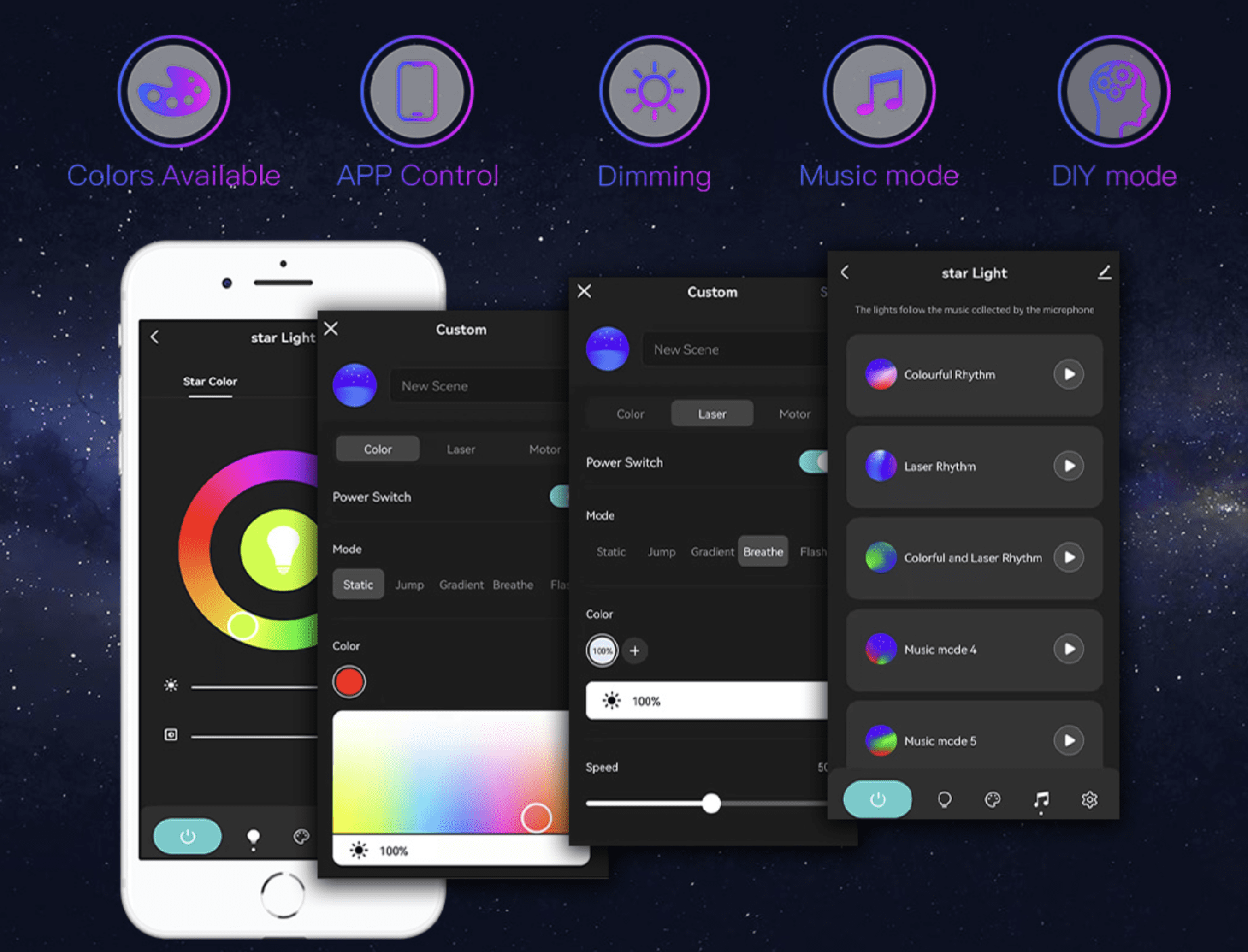 Podesivo svjetlo: Kreirajte atmosferu po svom ukusu uz opcije podešavanja načina osvjetljenja, boja i jačine svjetla.