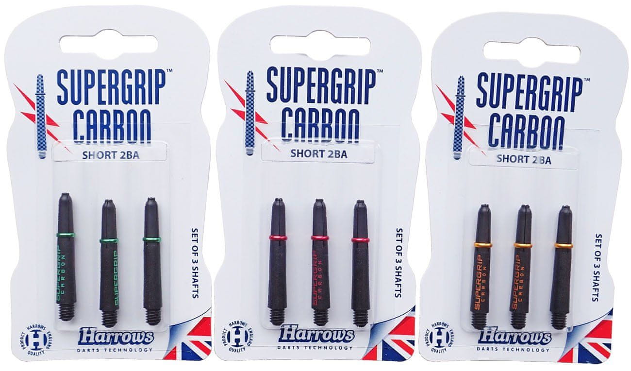 „HARROWS“ SUPERGRIP CARBON nastavci veličine S. Najnoviji dodatak uvijek popularnoj liniji Supergrip nastavaka. Nastavci su izrađeni od jedinstvenog karbonskog kompozita, što ih čini među najizdržljivijim koje Harrows proizvodi. Nastavak je opremljen metalnim prstenom koji čvrsto drži pero u nastavku. Duljina nastavka je 33 mm. Težina 1,2 g.