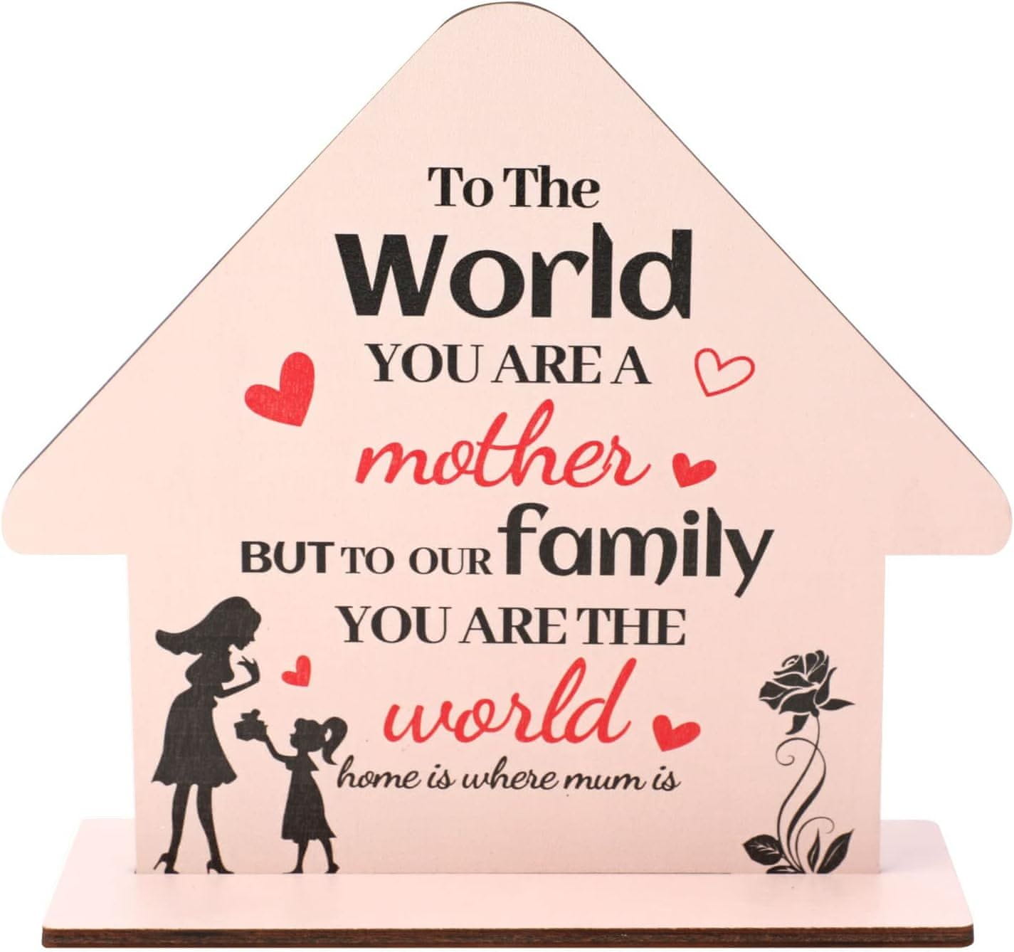 Nikcorp Drvena ploča za mamu u obliku kuće, idealan poklon za Majčin dan, ručni rad s natpisima na engleskom, 21x19 cm