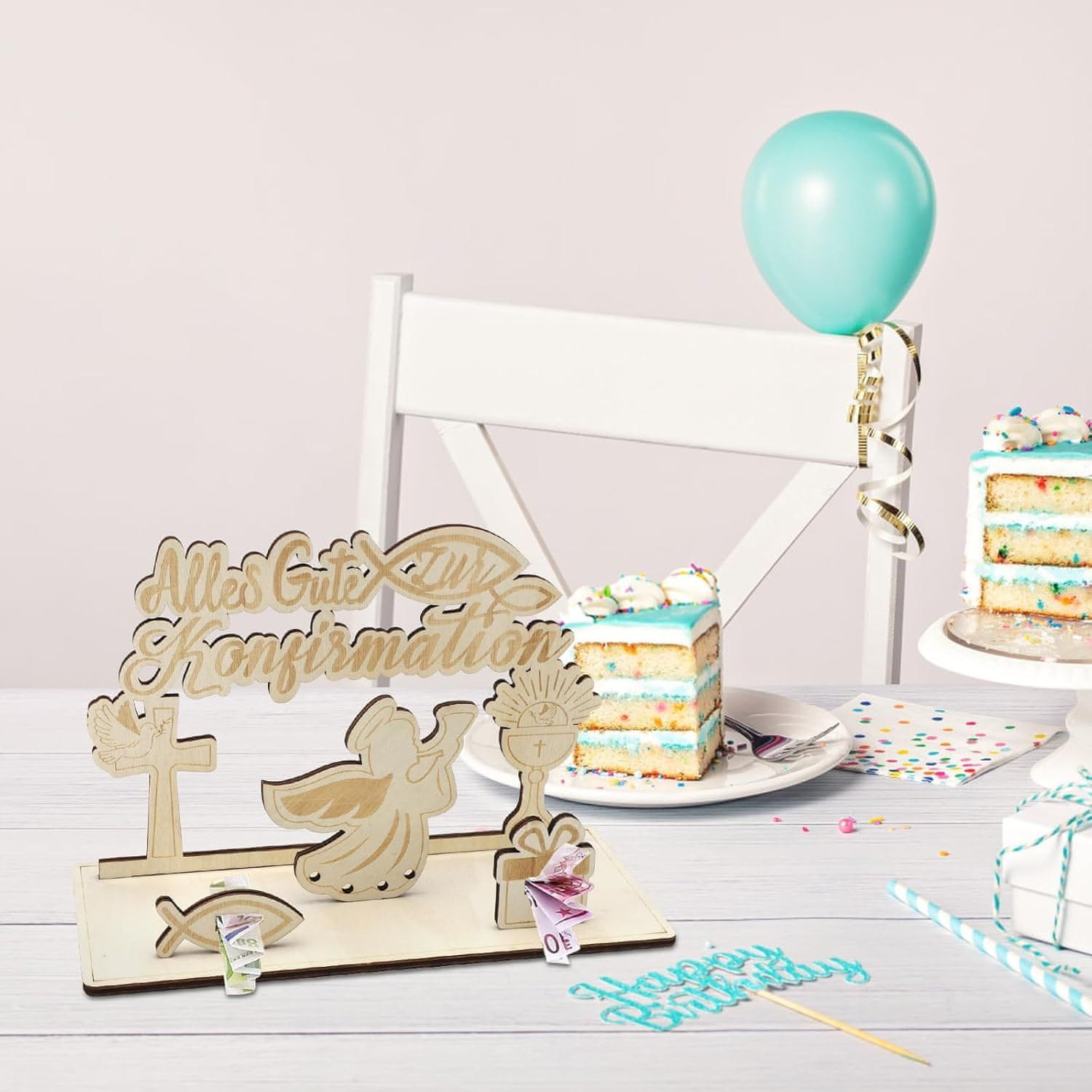 Poklonite jedinstven i simboličan drveni poklon za krizmu koji će obradovati primatelja svojom originalnošću i dubinom poruke. Ovaj pažljivo izrađeni drveni Anđeo Križ predstavlja kreativnu alternativu tradicionalnim omotnicama, idealan je i za djevojčice i za dječake. Njegova dimenzija od 25 cm x 11 cm x 11 cm čini ga elegantnim i praktičnim poklonom koji će biti sačuvan dugi niz godina. Poklon se ističe romantičnim dizajnom koji sadrži jasnu i srdačnu poruku blagoslova: „Alles Gute zur Konfirmation”. Dodatno je ukrašen anđelima, križevima, golubovima mira te motivima riba, koji simboliziraju vjeru, nadu i ljubav. To je prikladan način za izražavanje najboljih želja tijekom ovog posebnog događaja.