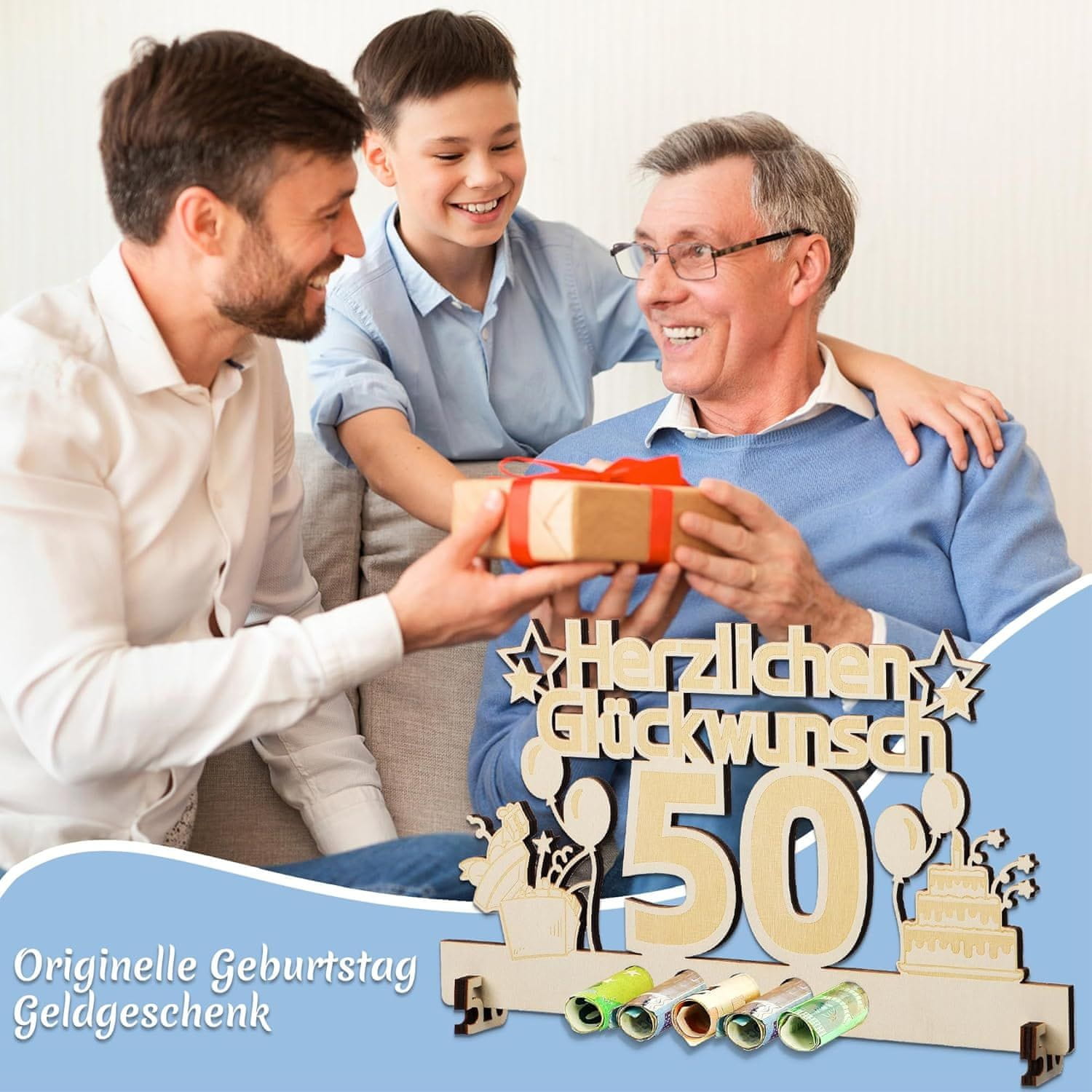 Nikcorp Drveni poklon za 50. rođendan, kreativna čestitka s 5 rupa za novčanice, laserski gravirana ploča za jubilej, 30x16,5cm