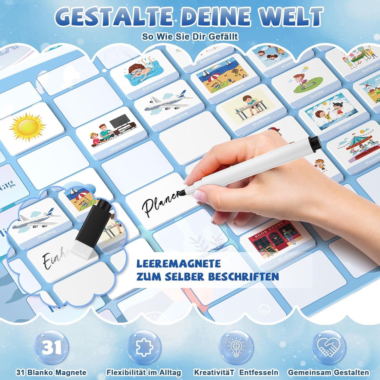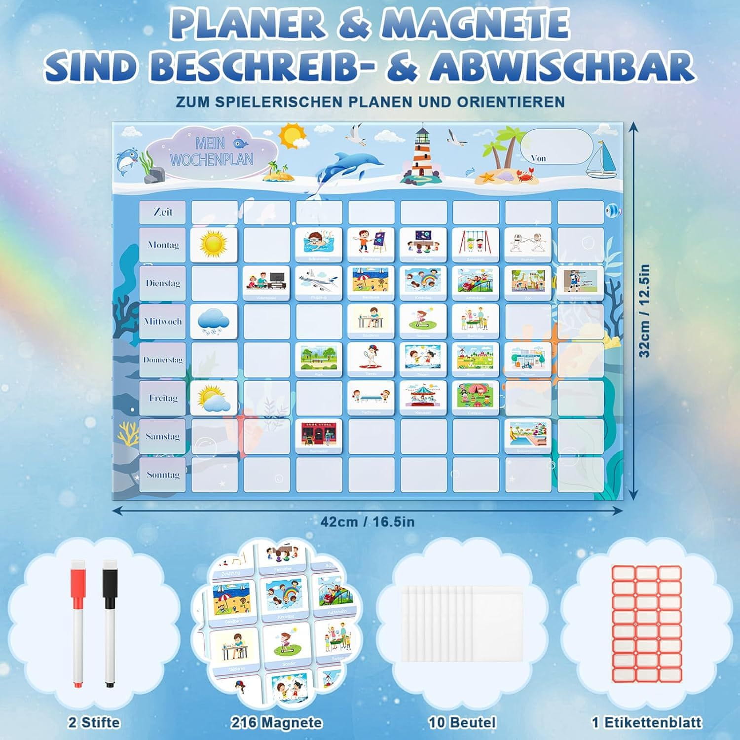 Nikcorp MOMSIV magnetska ploča za djecu tjedni planer s 216 magneta i flomasterom, Montessori dizajn, Blue Ocean