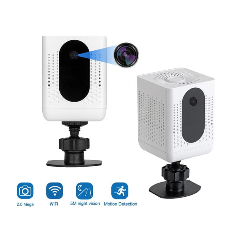 Zahvaljujući svojim malim dimenzijama, ova bežična Wi-Fi kamera može se koristiti gotovo bilo gdje. Čuvat će vaš stan, ured ili trgovinu tijekom vaše odsutnosti. Svi događaji pred kamerom mogu se pratiti na vašem pametnom telefonu, bilo da se vi i kamera nalazite bilo gdje na svijetu, a mini kamera će također poslužiti kao mala sigurnosna kamera ili baby monitor. Praktičan navojni držač omogućuje instalaciju kamere na različite površine.