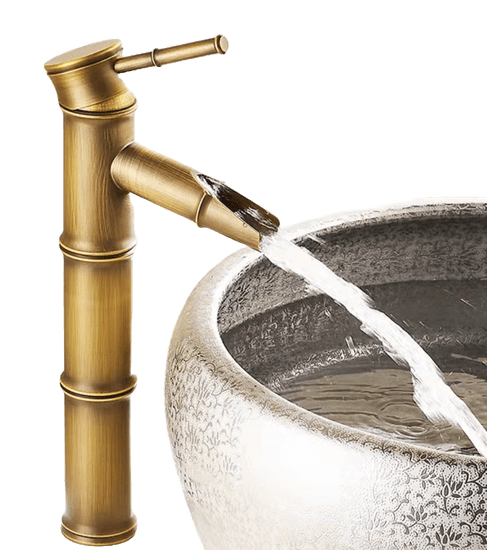 Tavalax Retro bambus miješalica za umivaonik s efektom vodopada – brončana završna obrada