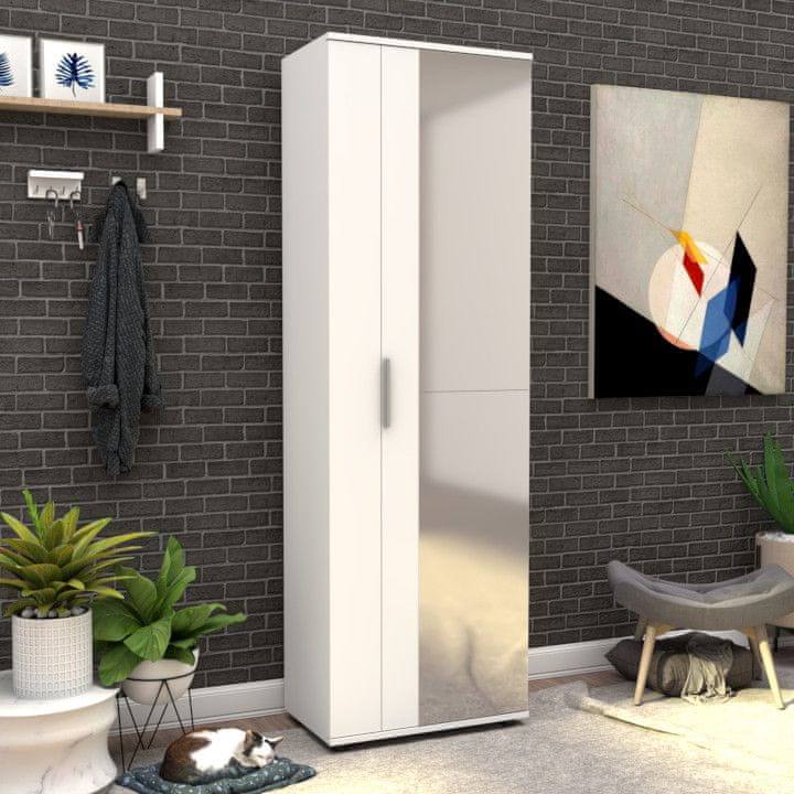 100% IVERICA PRESLOŽENA MELAMINOM Debljina: 16 mm Širina: 60 cm Visina: 187 cm Dubina: 35 cm Ormarić za cipele sa zrcalnim vratima Brojne police Može se pričvrstiti na zid, Broj paketa: 2 Veličina: 35,5 × 184 × 9,2 cm – 25,11 kg (1 komad) Veličina: 62 × 188,5 × 6,2 cm – 27,03 kg (1 komad)