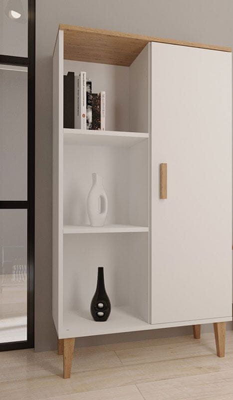 Prekrasna vitrina DENVER prikladna je za ljude koji žele svježinu i moderan stil u svom dnevnom boravku. Vitrina sadrži četiri police na koje možete spremiti knjige, časopise, suvenire ili društvene igre. Vitrina je dostupna u bijeloj boji.