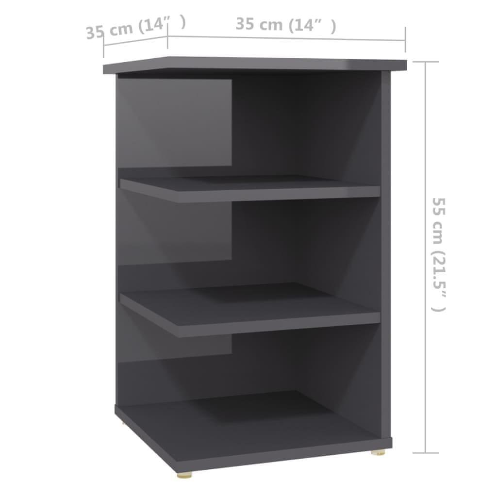 Vidaxl Bočni ormarić visoki sjaj sivi 35x35x55 cm konstruirano drvo