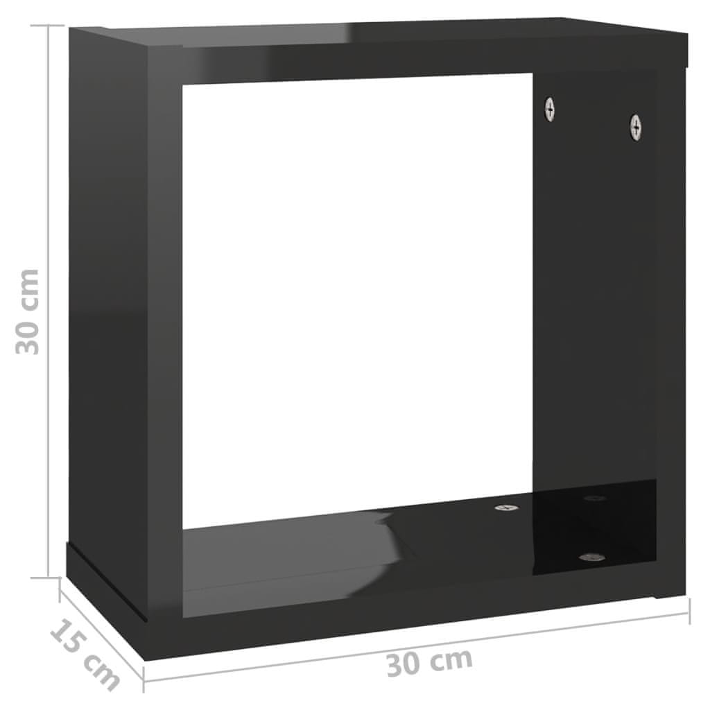 Vidaxl Kockaste zidne police 6 kom visoki sjaj crne 30 x 15 x 30 cm