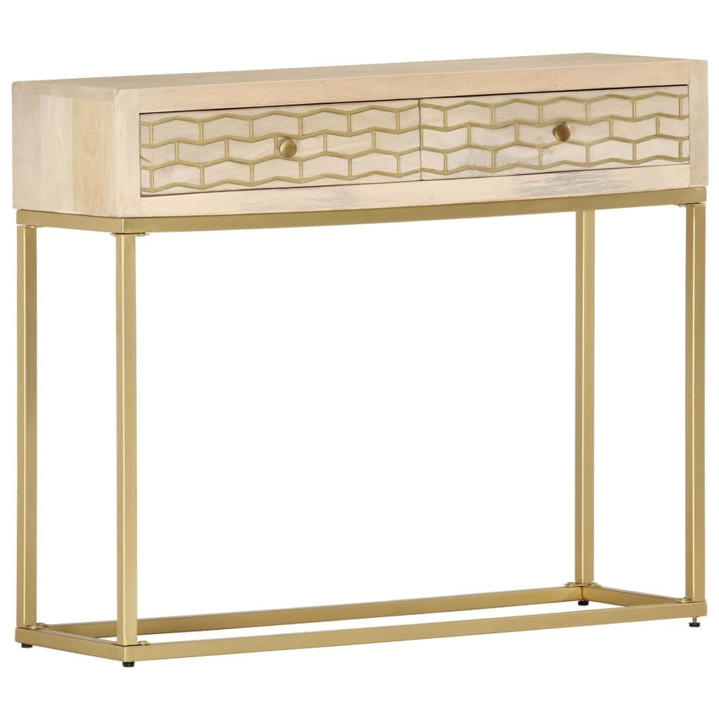 Vidaxl Konzolni stol zlatni 90 x 30 x 75 cm od masivnog drva manga