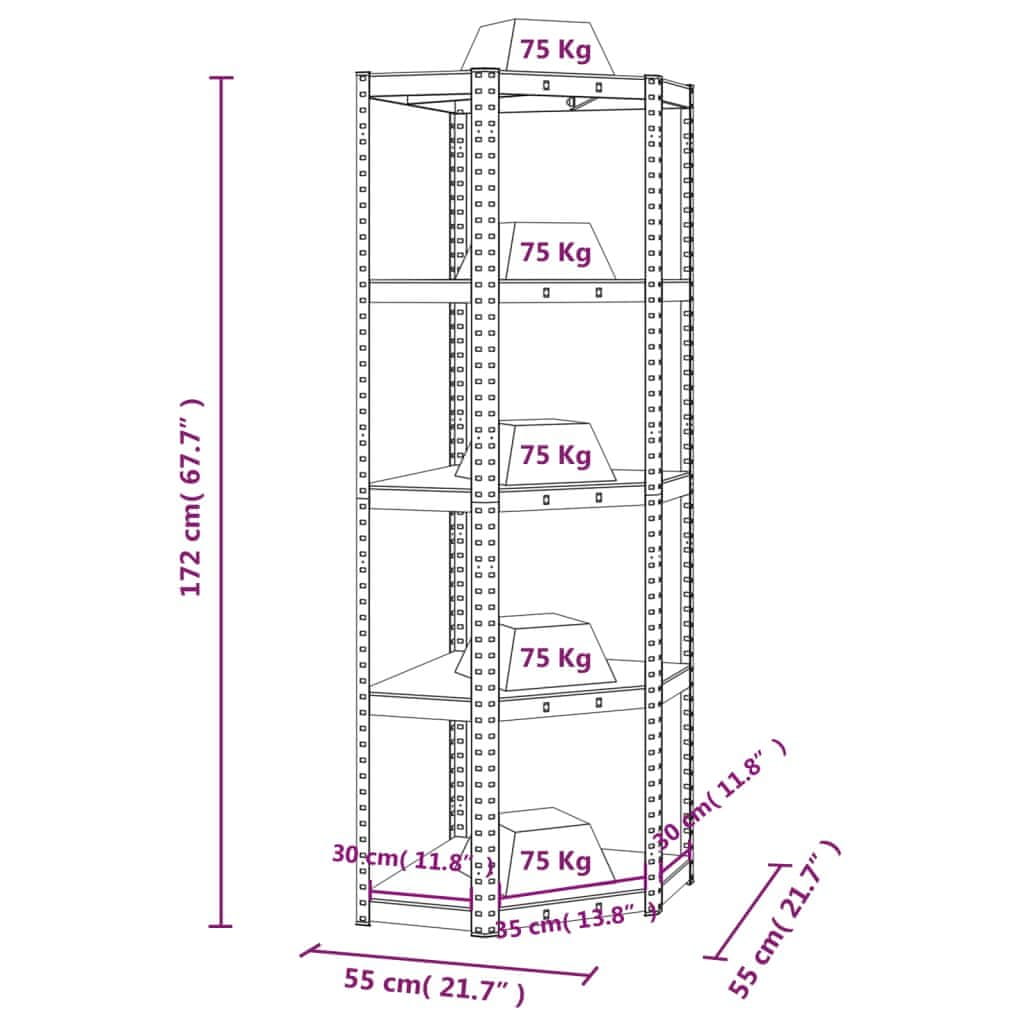 - Ukupna nosivost: 375 kg (75 kg po polici)