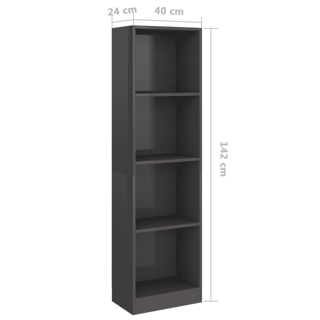 Vidaxl Ormarić za knjige s 4 razine sjajni sivi 40x24x142 cm drveni