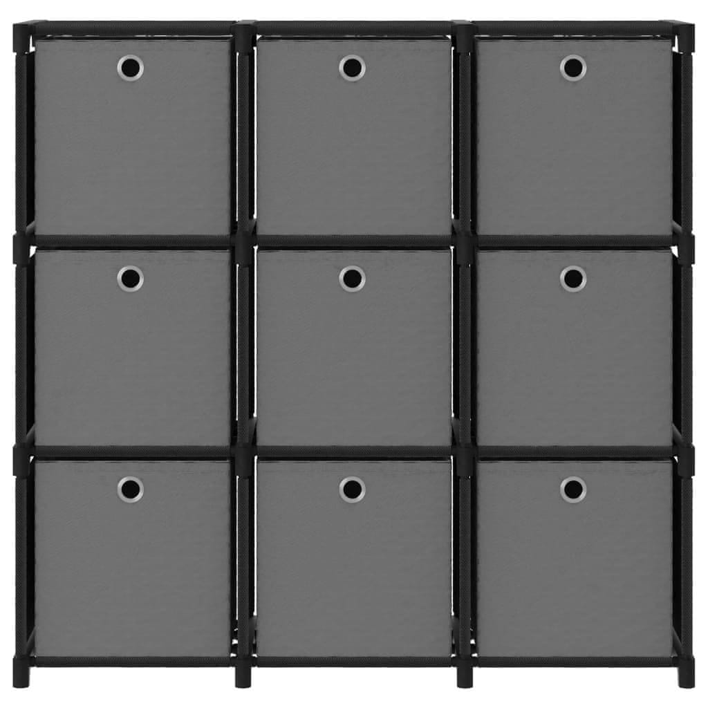 Vidaxl Police za izlaganje s 9 kutija crne 103x30x107,5 cm od tkanine