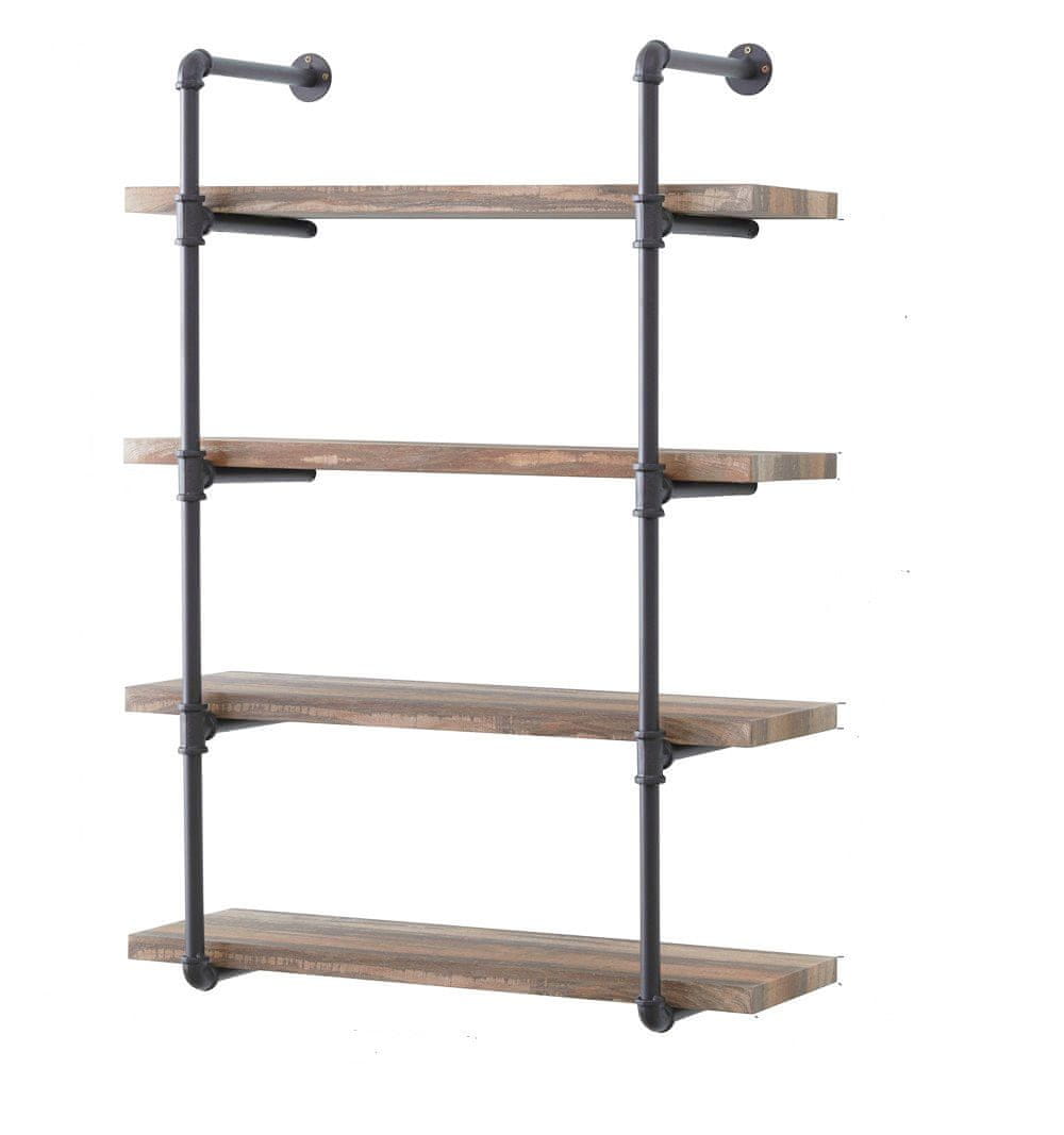 Boja: Orah Crno, 100% drva smreke Cijev: 100% metal Ručno izrađen Širina: 60 cm Visina: 70 cm dubina: 14 cm Brojne police Može se fiksirati na zid Sastavljen Kapacitet ležaja: 7,95 kg, Broj paketa: 1