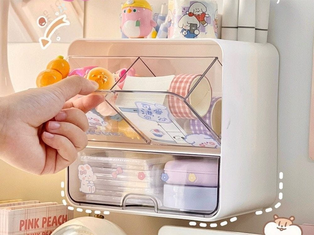 Nagibni kontejner s ladicom – idealan za pohranu blazinica od vate, štapića za uši i drugih sitnica, jer omogućuje jednostavnu upotrebu i estetski pristup.