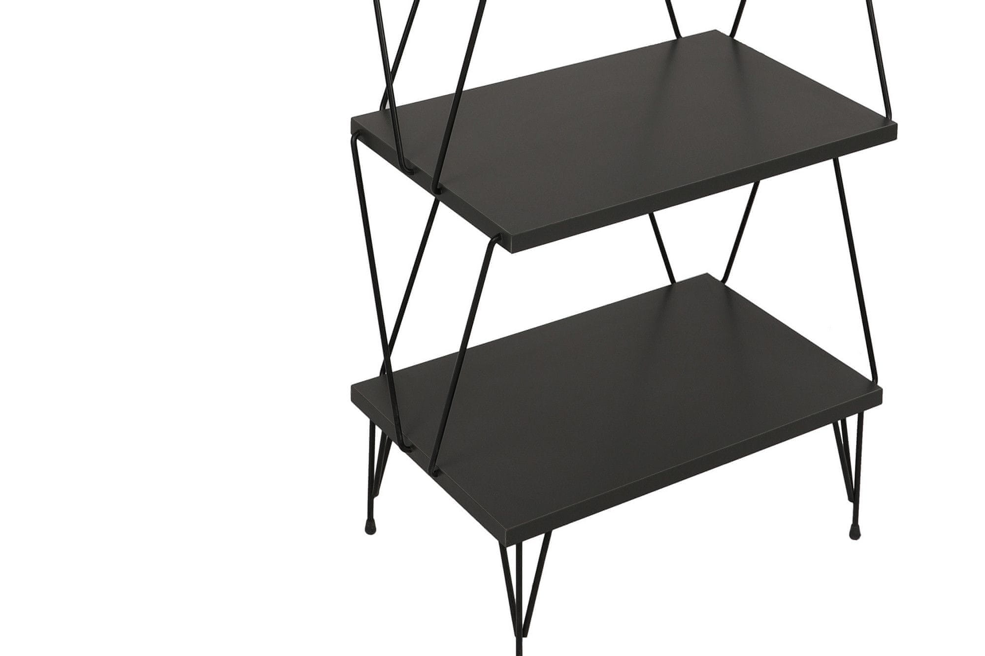 Polica modernog dizajna izrađena od metla u antracit boji sa policama od iverice presvučenim u melamin 18 mm. Dimenzija police je 165 × 48 × 31 cm. Visina polica 27,5 cm, visina nogu 15 cm.