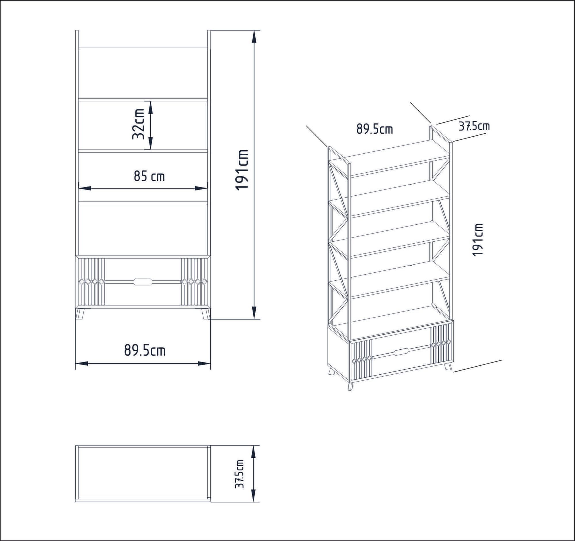 100% čestica obložena melaminom Debljina: 18 mm Metalne noge Širina: visina 89,3 cm: 191 cm dubina: 35,2 cm Brojne police Može se fiksirati na zid, broj paketa: 1