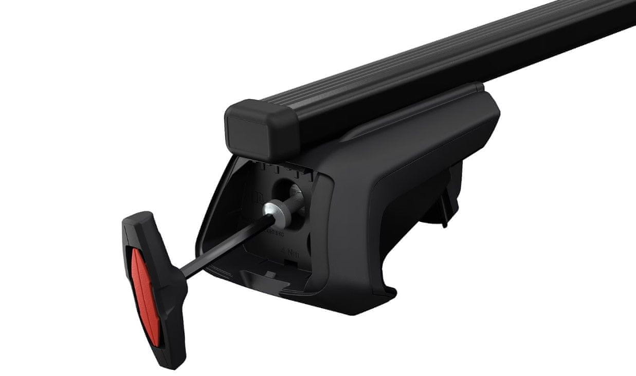 Thule krovni nosač duljine 135 cm. Pogodno za automobile koji na krovu imaju povišene šipke. Paket sadrži nosače s ručkama za pričvršćivanje i alate za montažu. Nosači nude mogućnost zaključavanja za potpunu sigurnost pričvršćivanja.