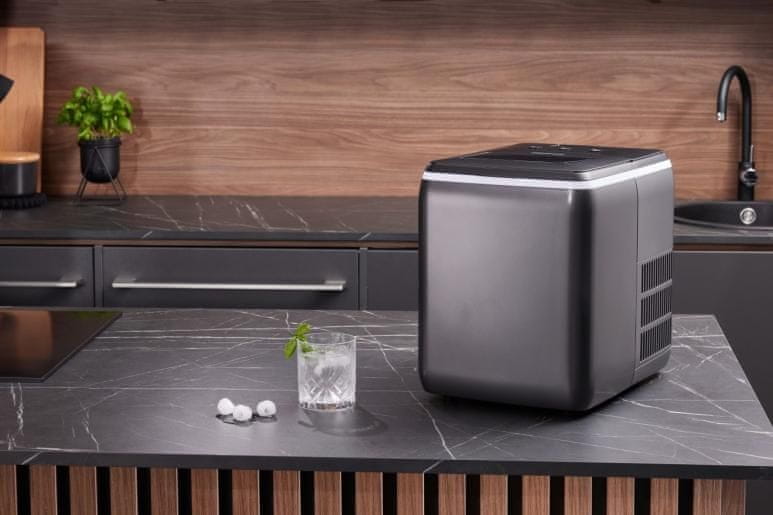Zahvaljujući svom jednostavnom i elegantnom dizajnu, s tri tipke i LCD zaslonom na vrhu, ledomat se savršeno uklapa u svaku kuhinju.