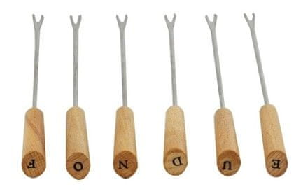 -Materijal: keramika, nehrđajući čelik, krom, drvo -boja: crna s prirodnom smeđom i srebrnom bojom -prekrasan dizajn -izuzetno kvalitetan dizajn -okretni stalak –6 x vilica i žlica za fondue