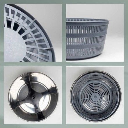 Ergonomski oblikovana ručka udobno leži u ruci i čini vrtnju salate dječjom igrom. Višak vode se brzo i učinkovito uklanja, tako da vaša salata ostaje hrskava i svježa. Svi unutarnji dijelovi mogu se lako ukloniti i očistiti bez napora.