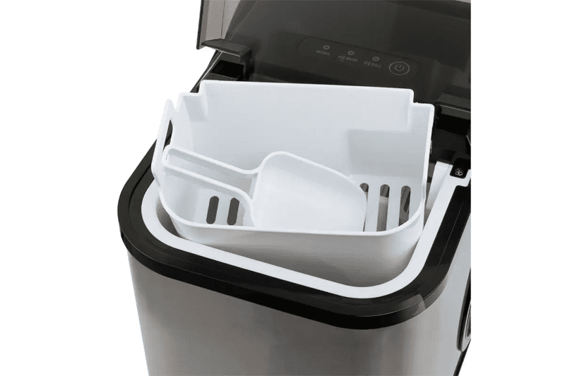 Aparat uključuje uklonjivu košaru za led i lopaticu, što omogućuje jednostavno skupljanje i čišćenje.