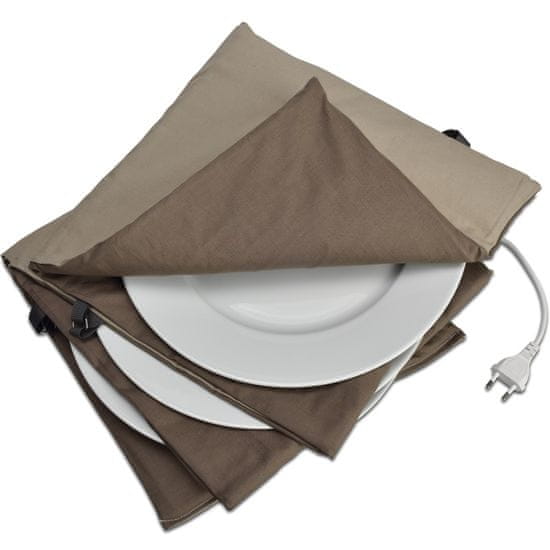 Zagrije do 10 tanjura od malih do veličine od 32 cm u samo 12 minuta. Maksimalna snaga od 220 W zagrijava ploče do temperature od 70 °C. Upotreba pamuka i dvostruka izolacija grijača tanjura osigurava maksimalno zadržavanje topline. Tkanina je otporna na vlagu i lako se čisti, bez štetnih boja i nudi optimalna svojstva za zaštitu tanjura od grebanja. Automatska regulacija topline sa sigurnosnim termostatom osigurava da grijač tanjura održava temperaturu na sigurnoj i konstantnoj razini.