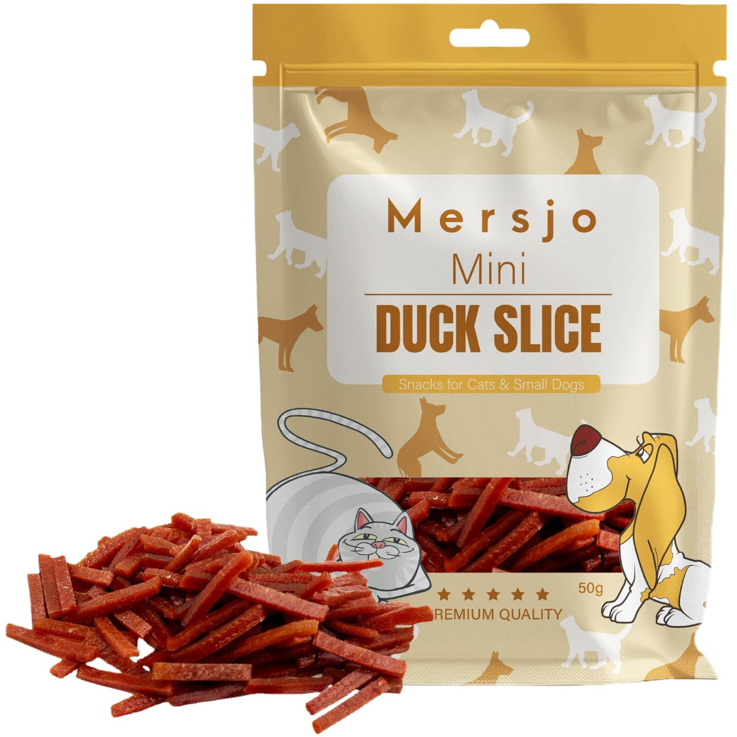 Prirodne poslastice za mačke i male pse – MERSJO pačji odresci 50 g