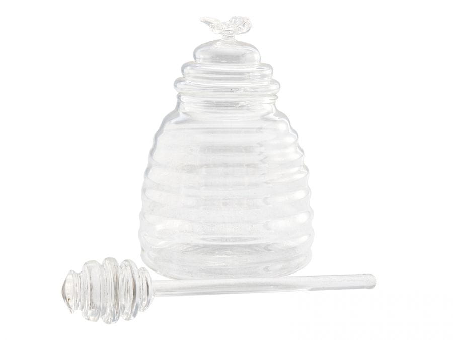 • Spremnik ima stakleni poklopac i žlicu za med
