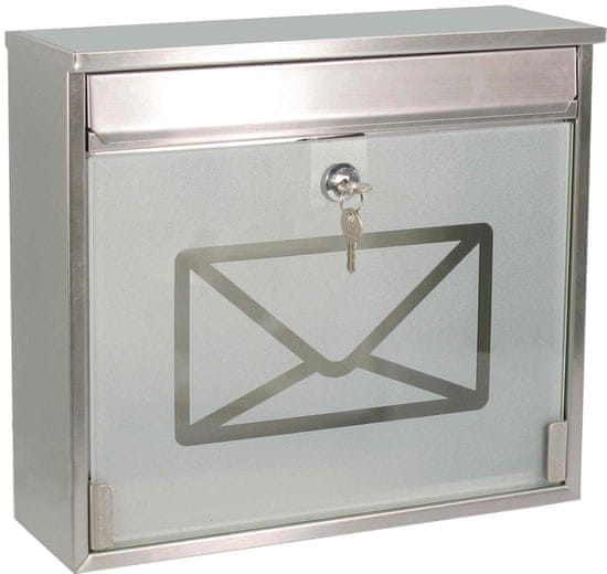 Sandučić od nehrđajućeg čelika s mliječnim kaljenim staklom. Pokupite poštu na prednjoj strani. Postavljanje na zid ili ogradu na četiri točke. Za unutarnje i vanjske prostore. Cijeli opis