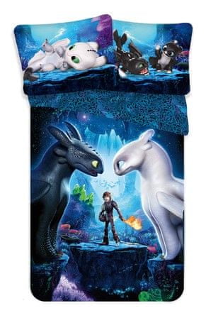 Originalni set posteljine izrađen od 100% pamuka, otisnut s motivom iz filma Kako dresirati zmaja 3. Artikl Jerry Fabrics oduševit će sve ljubitelje ove popularne serije filmova. Posteljina ima patentni zatvarač za jastuk i pokrivač, dimenzije su joj 140 × 200 cm i 70 × 90 cm. Cijeli opis