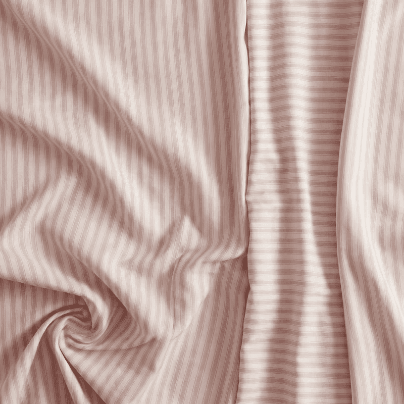 Dizajn s klasičnim prugama u nježnim ružičastim i krem nijansama stvara smirujuću i toplu atmosferu koja poziva na odmor. Prirodna pamučna vlakna osiguravaju izvrsnu prozračnost i upijanje, što omogućuje vašoj koži da diše, a vi ćete se svako jutro buditi naspavani i svježi.