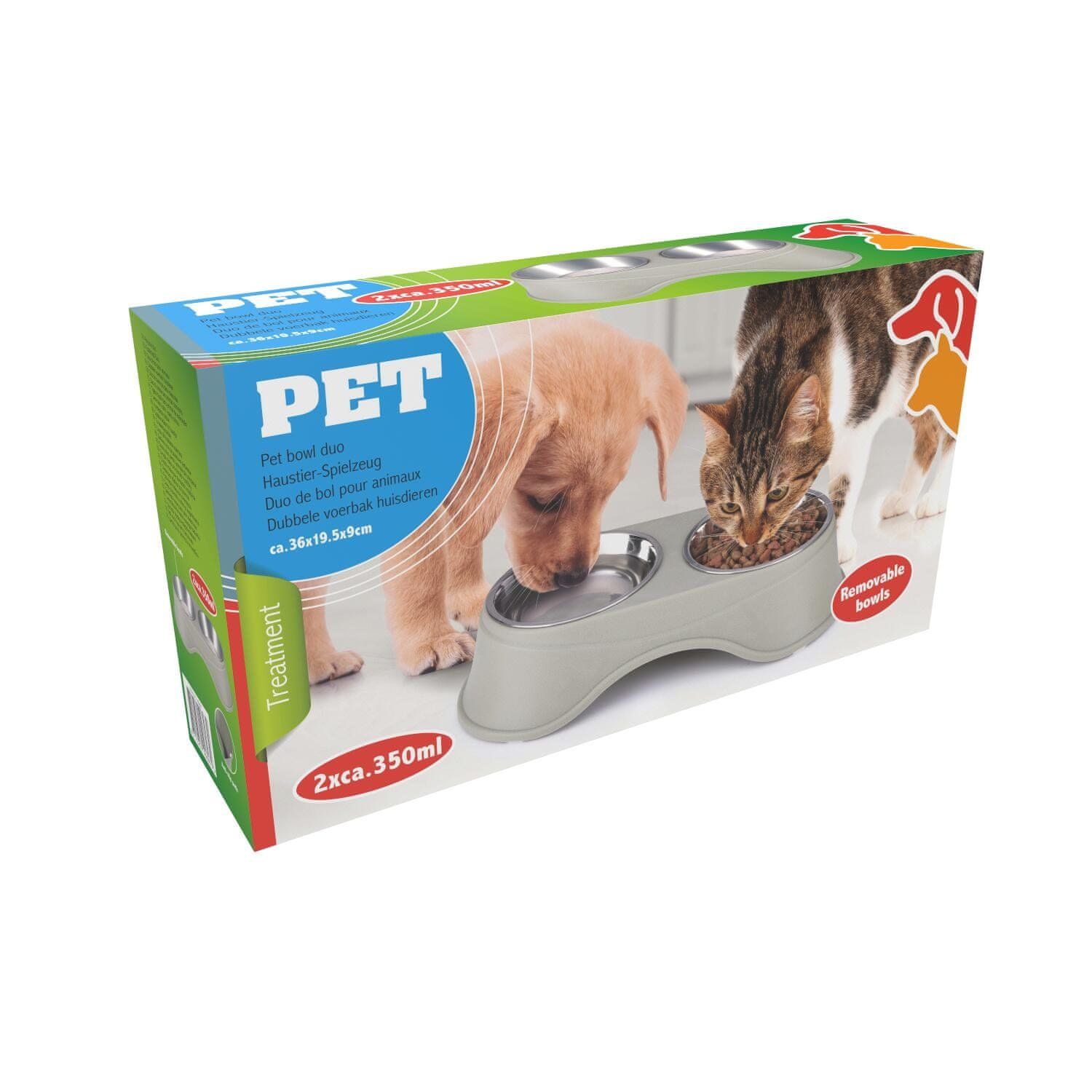 PET Dvostruka posuda za tretman sa postoljem za životinje, 2x 350ml, za hranu/vodu, siva, plava, roza