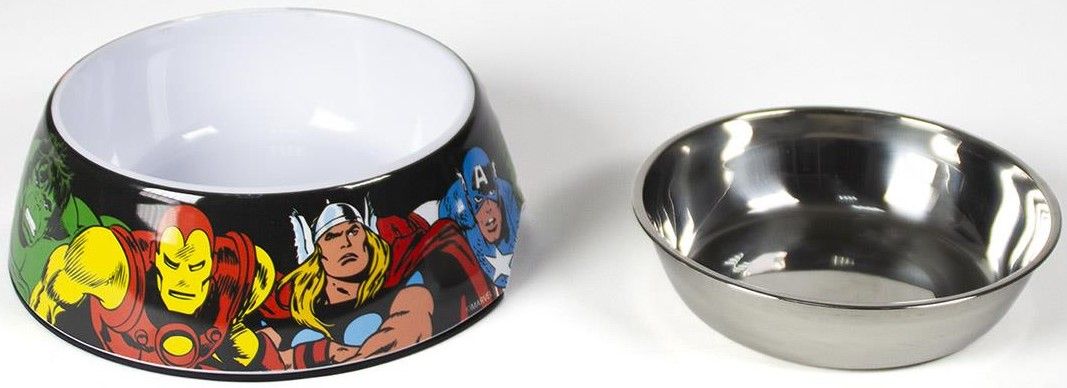 Raznobojna posuda za hranu ili vodu za vašeg ljubimca s motivom Marvelovih superheroja. Volumen 410 ml. Cijeli opis