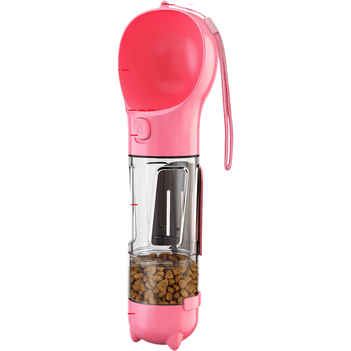 Nikcorp Boca za vodu za pse 2u1, prijenosna pojilica i zdjelica s spremnikom za hranu, idealna za putovanja i šetnje, roza, 300 ml