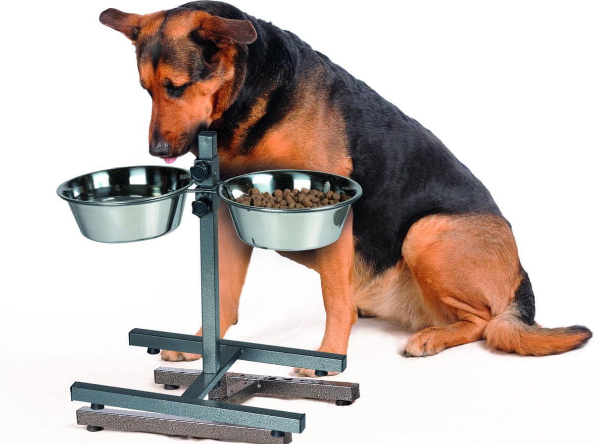 Neklizajuće postolje, dizajnirano s otvorima za obje posude, osigurava stabilnost i sprječava pomicanje posuda tijekom hranjenja. Postolje je podesivo, što vam omogućuje podešavanje visine od 8 cm do 38,5 cm, osiguravajući udobnost vašeg ljubimca pri hranjenju, bez obzira na njegovu veličinu. Podesiva visina posebno je korisna za pse različitih veličina jer omogućuje prilagodbu njihovim potrebama.