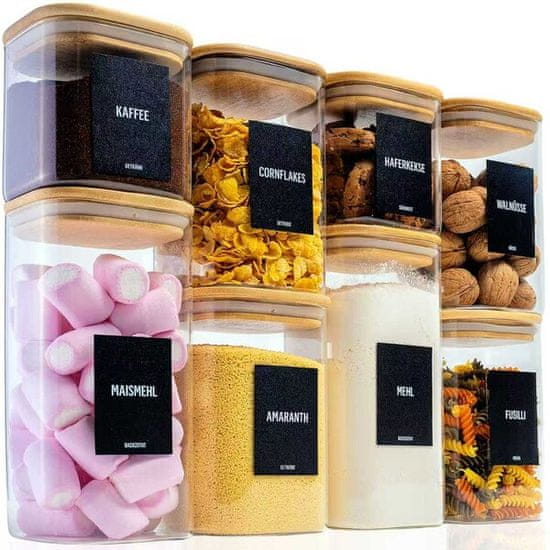 Ekskluzivno uz vaš 8-komplet dobivate još 16 elegantnih naljepnica i kredni marker, s kojima možete označiti svoje staklenke za pohranu ili druge stvari.