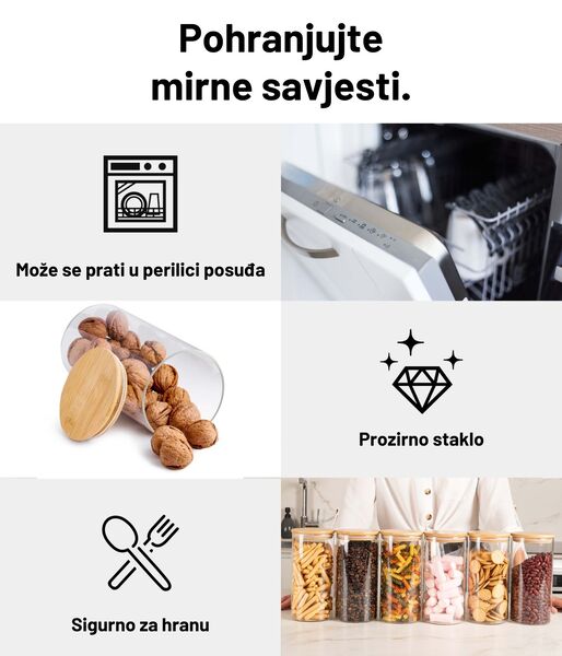 ✅ SIGURNO ZA HRANU – Naše staklenke izrađene su od visokokvalitetnog borosilikatnog stakla, a poklopci od ekološki prihvatljivog bambusa – sve je naravno bez BPA i olova.