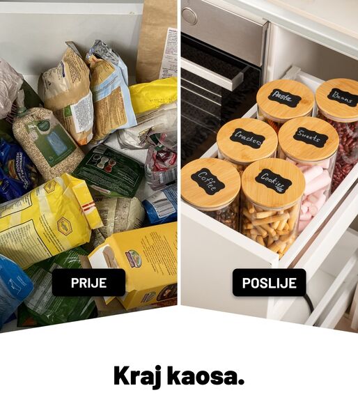 Dosadili su vam različiti spremnici za svaku namirnicu? To brzo postane neuredno i ne izgleda lijepo – bilo da su spremnici na radnoj ploči ili u ormariću.