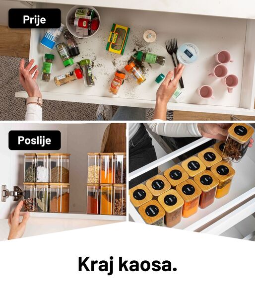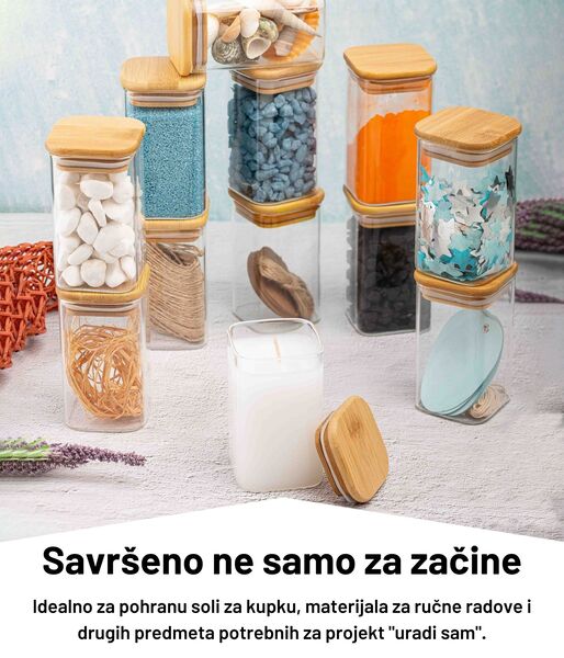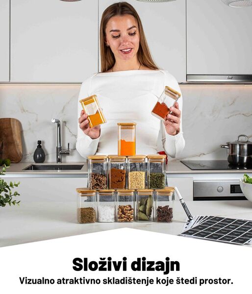 OPTIMALNA ORGANIZACIJA – S našim praktičnim staklenkama s bambusovim poklopcem vaša će kuhinja uvijek biti uredna. Bez obzira držite li staklenke na kuhinjskoj radnoj površini, u vitrini, smočnici ili ormariću, odmah ćete pronaći ono što vam treba!