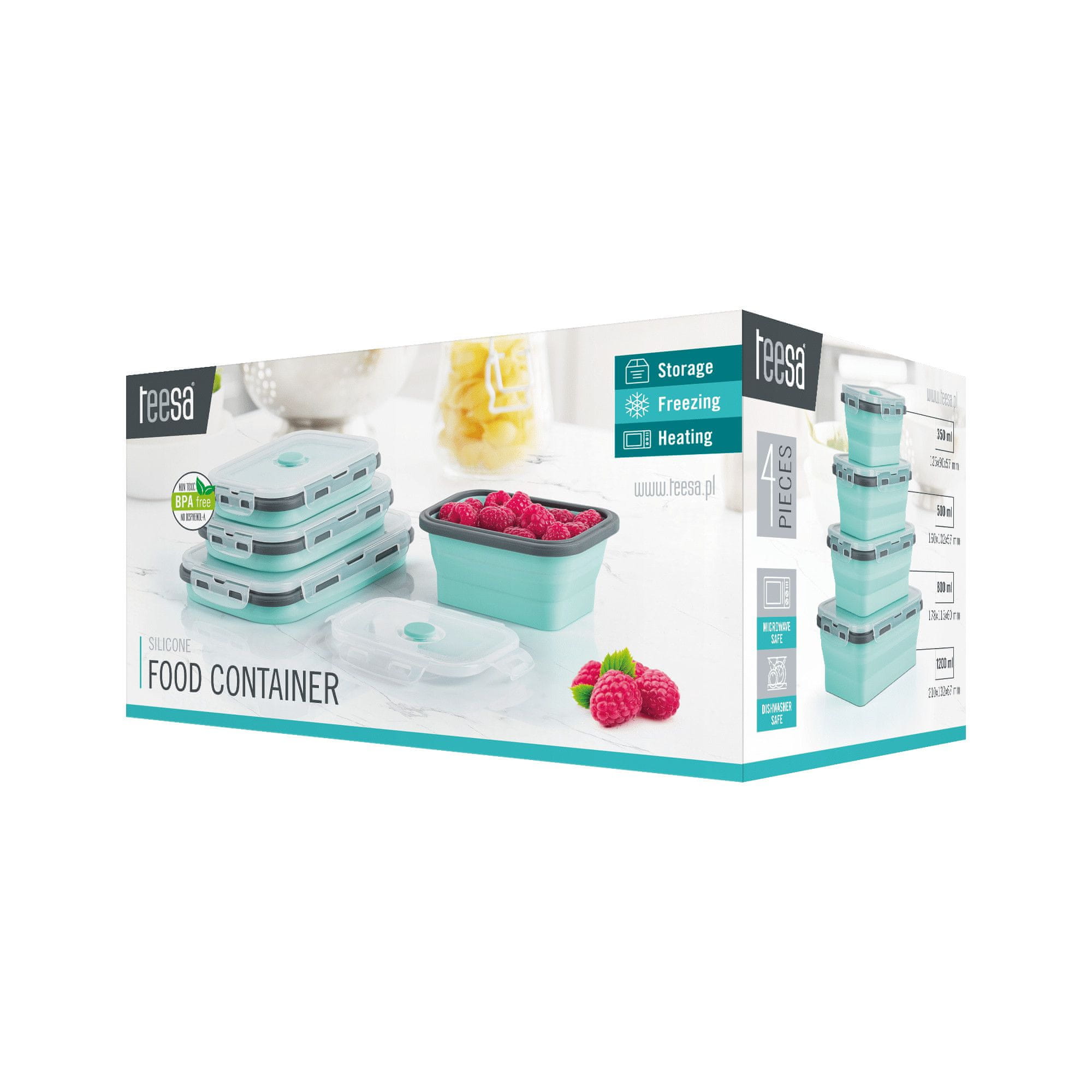 Teesa posude za hranu izrađene su od izdržljivih i netoksičnih materijala bez BPA namijenjenih kontaktu s hranom. Praktičnost korištenja također povećava mogućnost pranja posuđa u perilici posuđa.
