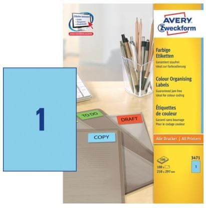 Avery Zweckform Etikete 3471 210X297, plave, 100 listova